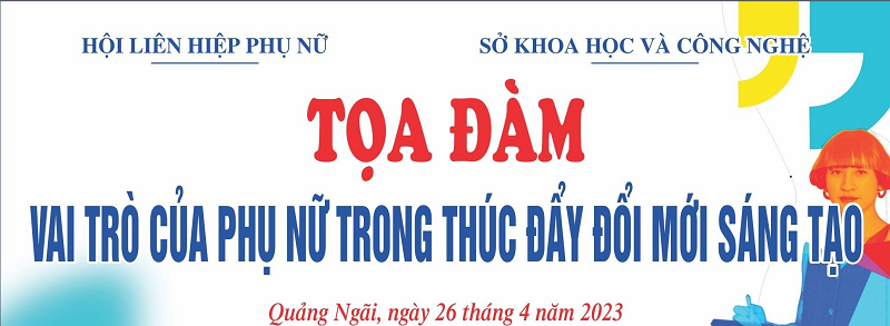 Ngày 26/4, Sở Khoa học và Công nghệ phối hợp với Hội liên hiệp phụ nữ tỉnh Quảng Ngãi sẽ tổ chức Tọa đàm “Vai trò của phụ nữ trong thúc đẩy đổi mới sáng tạo” năm 2023 tại khách sạn Hùng Vương, 45 Hùng Vương, thành phố Quảng Ngãi.